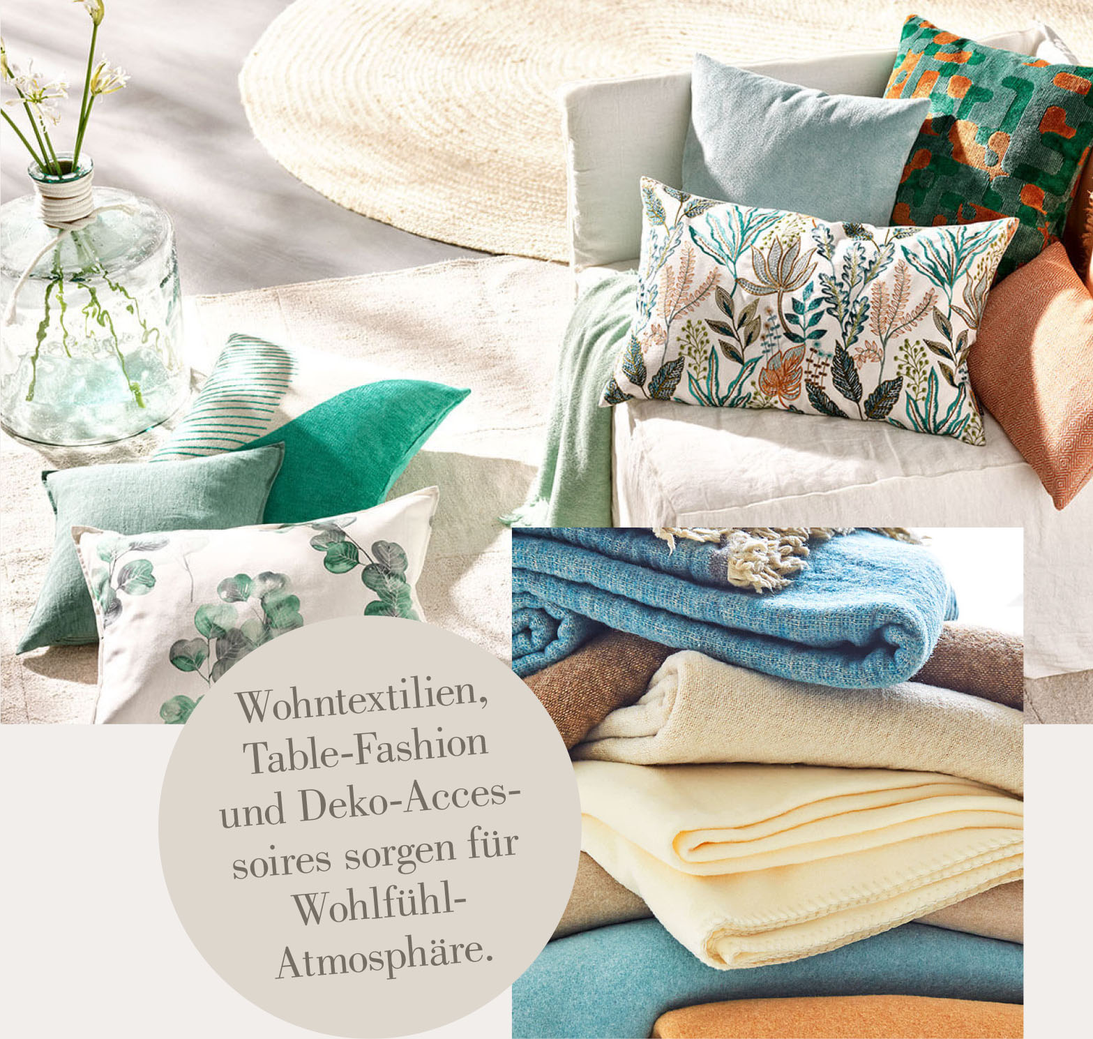 Lassen Sie sich von unserer liebevollen Auswahl an hochwertigen, dekorativen Kissen und Decken in wunderschönen Stoffen und Designs inspirieren und freuen Sie sich auf exklusive Table-Fashion.